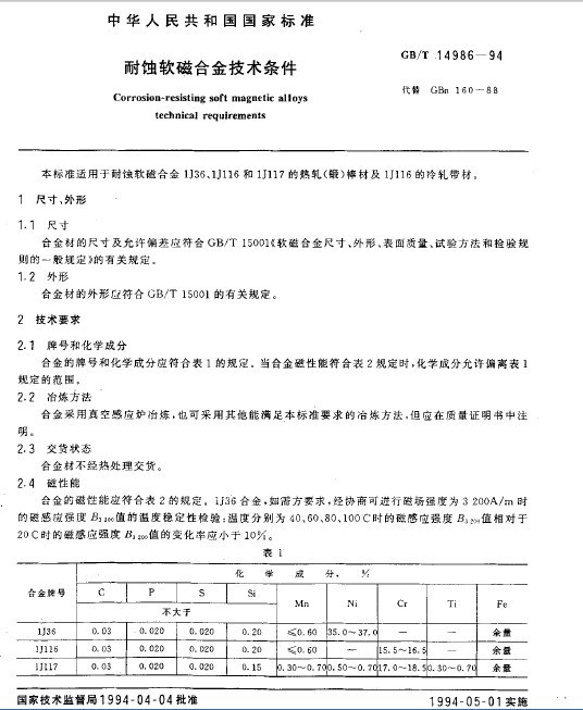 衡陽市金則利特種合金股份有限公司成立于1999年,公司主營耐蝕軟磁合金,為湖南省高新技術企業(yè)。公司自成立以來,即致力于耐蝕軟磁合金的研發(fā)。公司已具備年產耐蝕軟磁合金8000噸的生產能力。