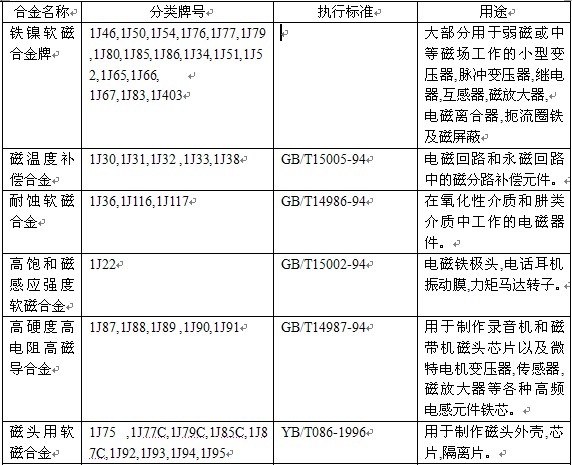 附:(下面是重要的硬質軟磁合金的特點)